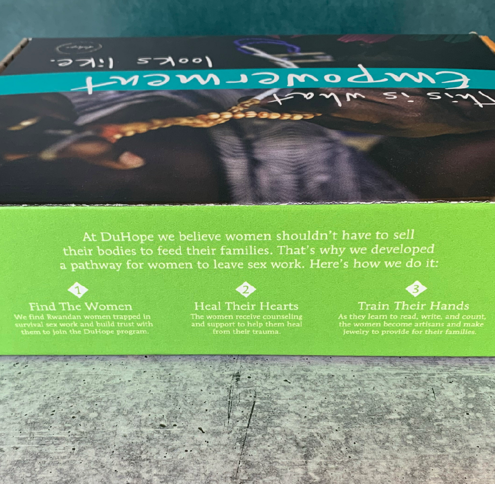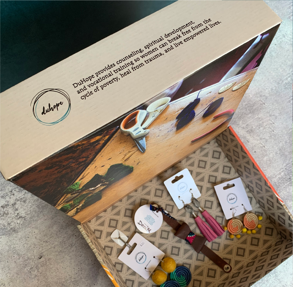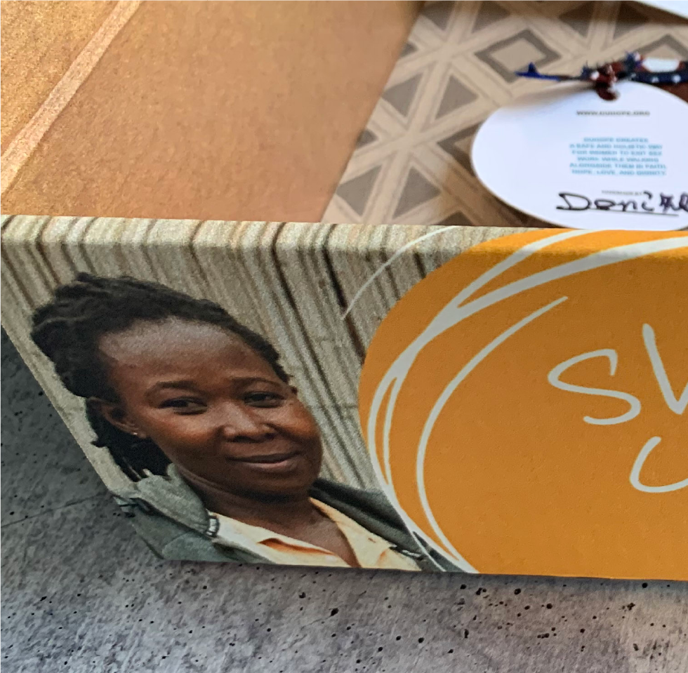 Rwandan women who have left survival sex work learn how to read, write, and become artistans through the DuHope program so they can provide for their families with dignity. But jewelry hanging from generic wooden stands didn't connect customers with the heart behind these products. The organization needed a display or signage to share the story behind the jewelry.